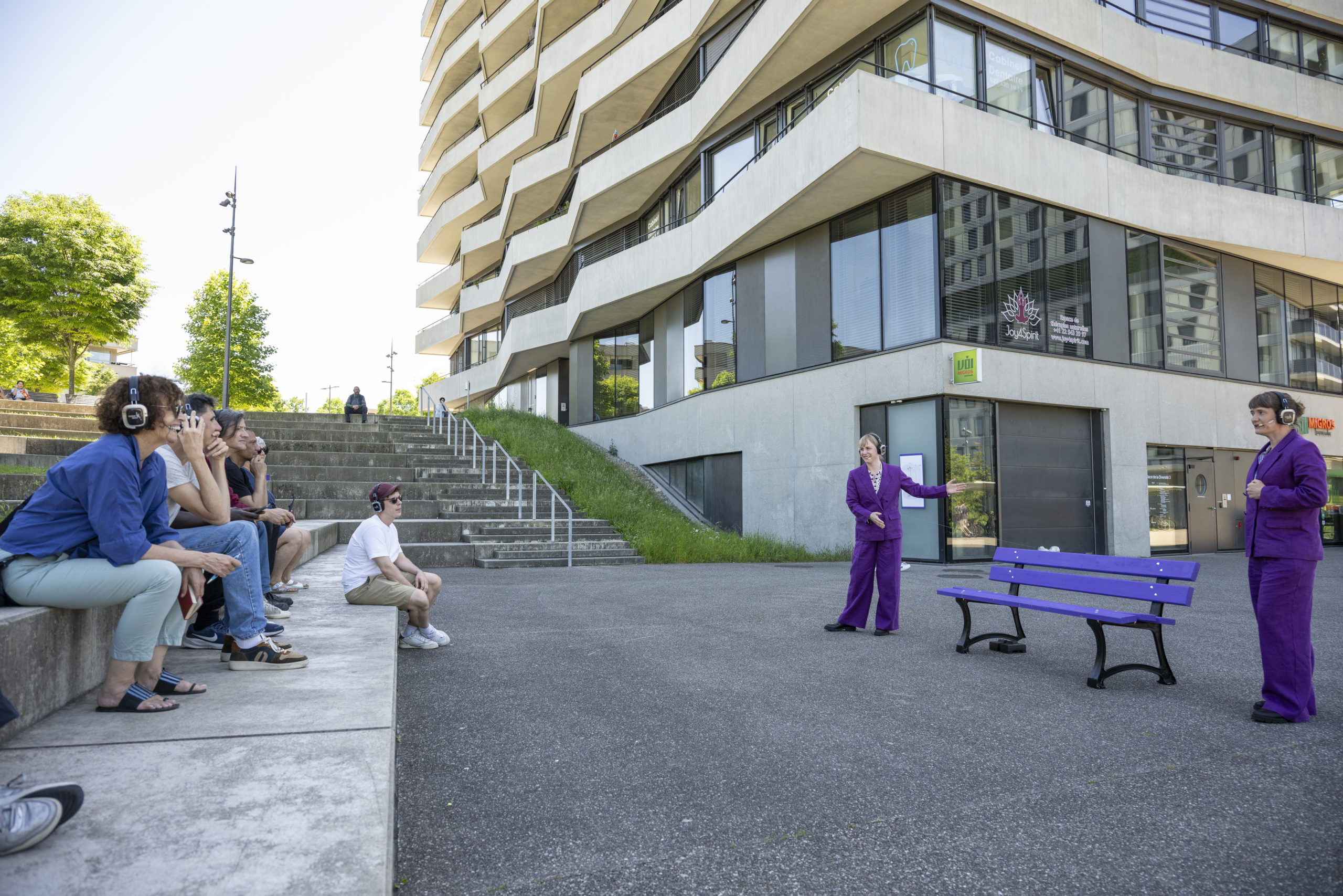 Sur la Place de la Diversité, deux guides vous plongent, 40 minutes durant, dans l’expérience d’être femme en 2025 dans les rues de Meyrin. Pour Une Ville à soi, le service de la culture a invité le Collectif Sur Un Malentendu à travailler autour de la place des femmes dans l’espace public meyrinnois. Nous sommes parti·e·s à la rencontre d’habitantes de la ville et avons récolté leur parole.